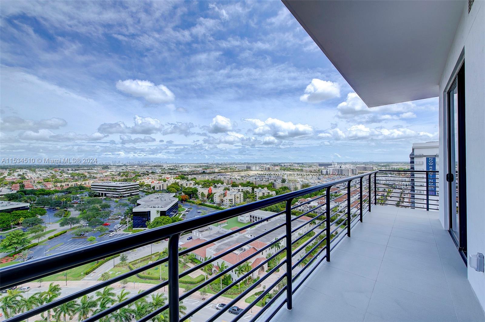 Beautiful, modern, luxurious apartment 3/3 with magnificent views of Doral, Miami International Airport, Downtown skyline, and Miami Beach skyline. Located on the 19th floor. Beautiful wrap-around balcony to enjoy the views - lots of impact sliding doors and large windows. Tile throughout the apartment, washer/dryer in unit. One bedroom with a bathroom can be independent of the rest of the living space and has its own door to the hall so you can rent it out. 2 assigned parking spaces and 1 storage unit. Granite countertops, stainless steel appliances, wooden cabinets. Excellent recreation area with high-end gym, large luxurious pool area, steam room, and 24-7 concierge and valet parking included.